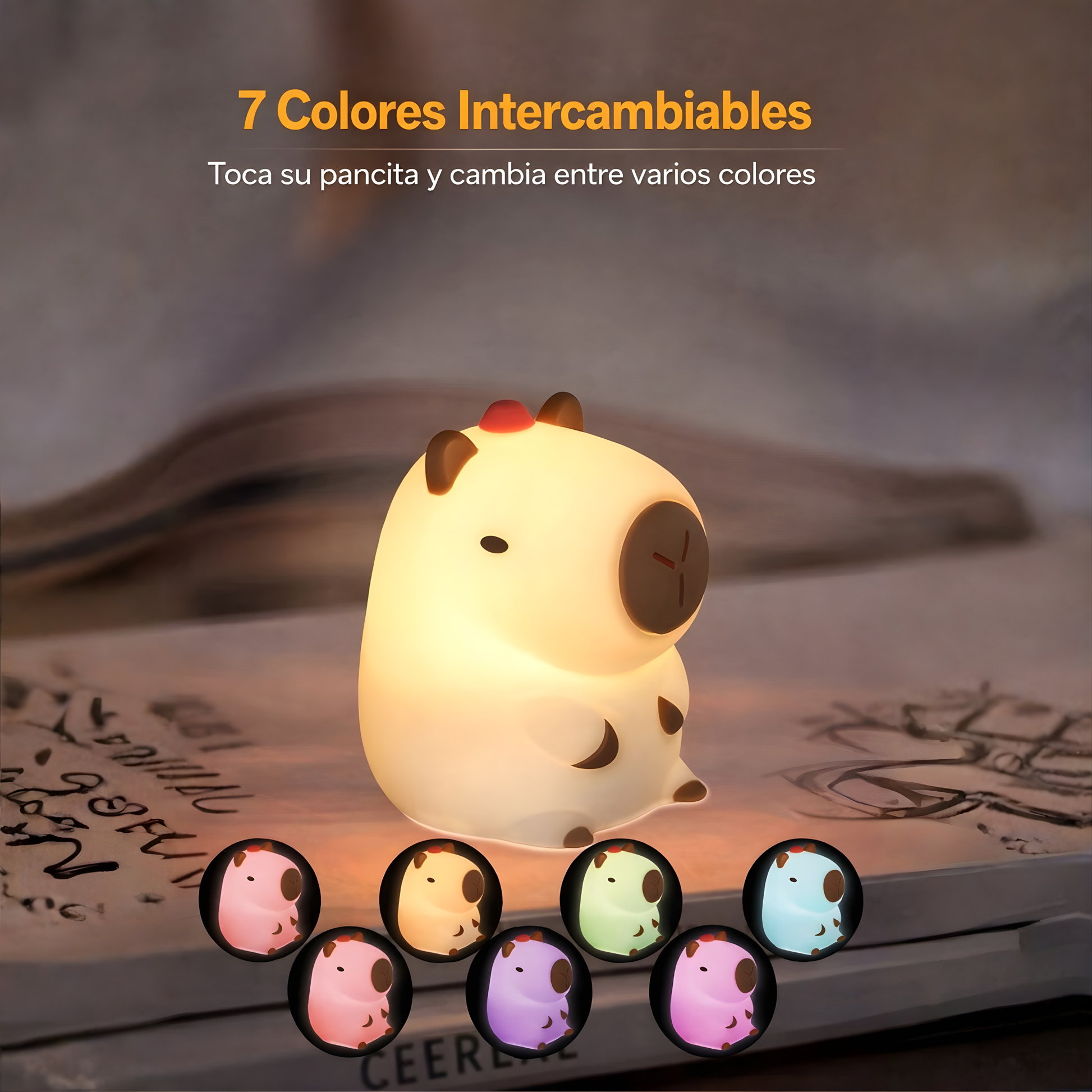 - 🖐️ Control táctil 360° ultra intuitivo — Enciéndela o apágala con solo tocar cualquier parte de la capibara. Fácil, práctico y divertido.